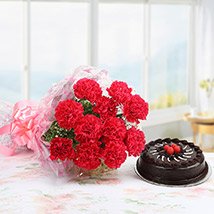 Carnation % cake20 Carnations bouquet & chocolate cake