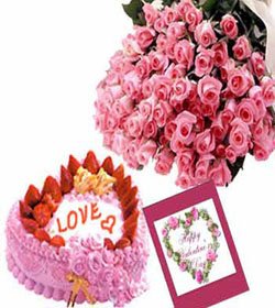 Pink is BeautifulA beautiful arrangement by our florist with 3 dozens pink roses and mocha heart shape cake w/ special greeting card. A nice gift when you fall in love with someone but don't know what to offer her.