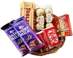 Chocolate Hamper - 13Cadbury DairyMilk SILK Choc Bars - 2 ,65 gm eachToblerOne Chocolates - 300 gms Ferrero Rocher - 6 pcs KitKat Chocolates - 3 Nos