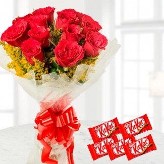12 Red Roses Bunch - 5 Nestle KitKatNo Product Detail Available