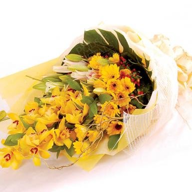 Glorious CymbidiumsShower her with a grand bouquet of Cymbidiums , Stargazer Lilies, Gerberas and Monstera.