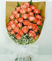 Pink Memories33 pink rose single bouquet of flowers, mango leaves, baby's breath bottom appropriate embellishment. Sweet, pretty, endearing just like your sweetheart. Gift this charming creation of blushing pink roses and baby's breath and make her feel like the princess she is.