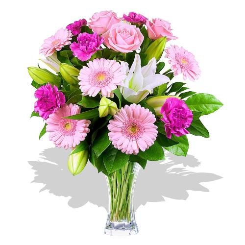 SOFTA delightful bouquet which is stunningly arranged and includes pink flowers with some white lilies - a perfect combination for a sweet flower bouquet!