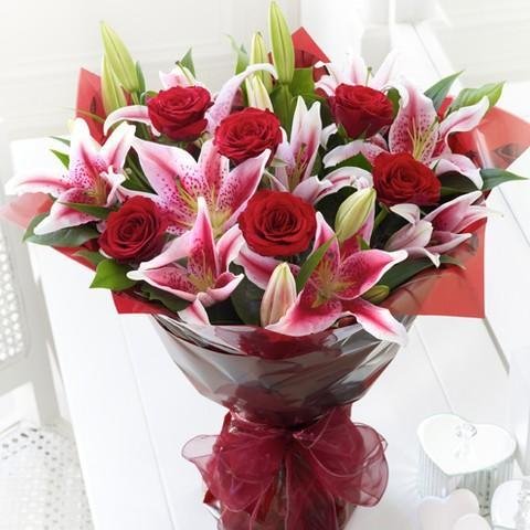SWEET LOVEYour loved ones will be thrilled with a stunning bouquet of red roses and stargazer lilies.