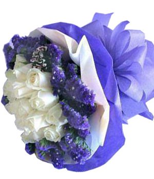 Your Mind19 white roses (roses color can be changed to red, pink, champagne if you want), with purple forget-me-not.