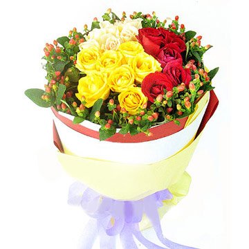 6 red 6 orange 6 white6 red 6 orange 6 white roses in bunch.