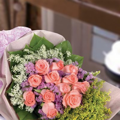 MagnifiqueMet the significant person in your life that you want to spend forever with? Let this sweet scented 12 Pink Roses Hand Bouquet speak your unspoken words of love.