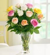 Vase Of Roses...An ornate greeting to say how much the special person means to you. 12 mix roses in a vase.