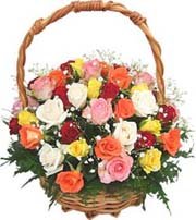 Garden Party Basket24 pieces of mix roses in a gorgeous native basket. Beautiful and delicate pastel colors flowers arranged in large fireside basket. Perfect for decoration of any ceremony or party.