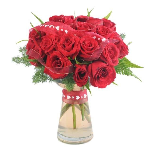 PRIMARY SIGNIFICANCEExquisite floral arrangement in a original vase with vibrant 24 red roses. The Red Rose not only carries more meaning than many other color roses, it is also one of the most universal of all symbols. Something so vibrant is meant to be shared with the loveliest being.