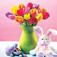 Never You FarRed, yellow, blue 15 tulips are arrange in bouquet. Note: Color may vary.